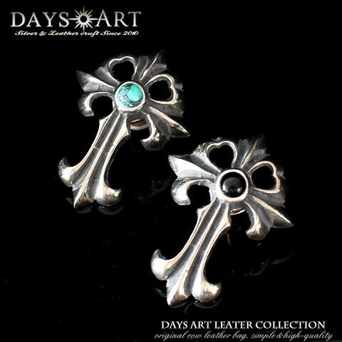 ゴシックデザインのクロスモチーフの中央にイミテーションのオニキスとターコイズがアクセントになっています。