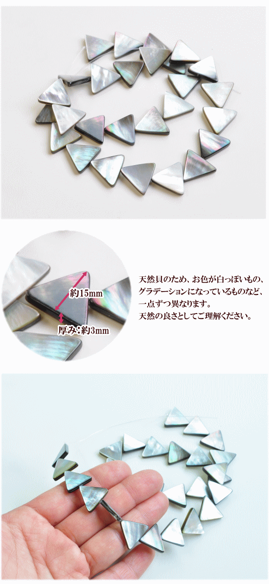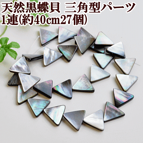 天然 黒蝶貝 三角型パーツ 1連(約40cm)27個入 《 天然 シェル ネックレス ピアス ブレスレット 》