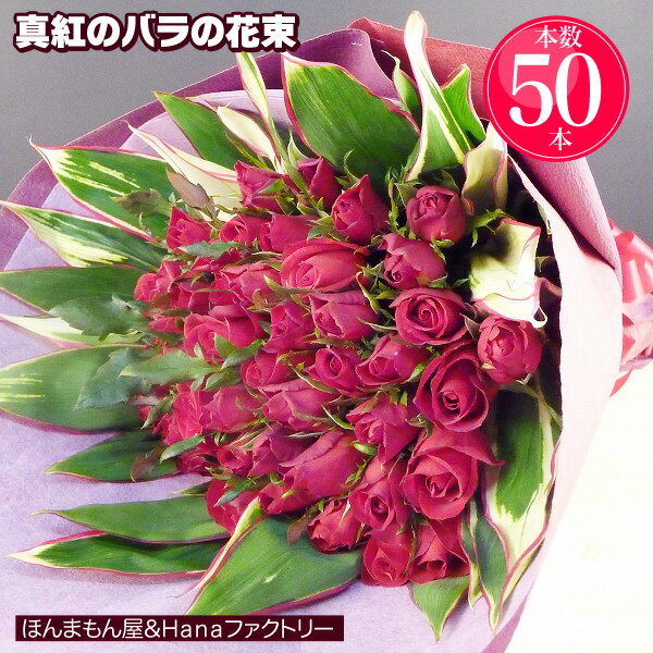 【商品詳細】 サイズ :バラの長さ⇒50cm以上、ラッピング込での長さは75〜80cmほどになります 販売本数 :50本花束 カラー:真紅のバラ 備考:豪華ラッピングつき!一度は贈られたいバラの花束。
