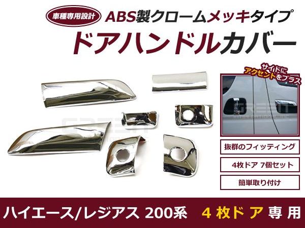 【送料無料】 ハイエース 200系 4ドア用 メッキ ドアハンドルカバー セット 標準ボディ ワイドボディ 1型 2型 3型 【トヨタ サイドドア ドアカバー メッキモール クロームメッキ ドアノブカバー 鏡面メッキ シルバー】