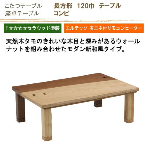 こたつ 120幅長方形 コタツテーブル コンビ120 天然杢タモ、ウォールナット突板 国産品