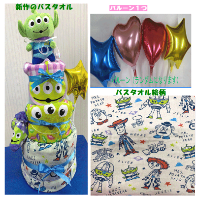 【出産祝い】【おむつケーキ 3段 】【ディズニー】【トイストーリー】【エイリアン】☆67☆送料無料 即日発送オムツケーキ名入れ刺繍男の子用