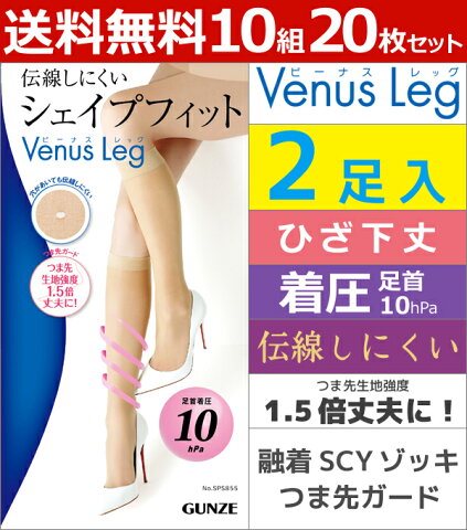 送料無料10組 20枚 セット Venus Leg ビーナスレッグ 伝線しにくい シェイプフィットセパレート 着圧 2足入 ひざ下丈ストッキング 足首10hPa グンゼ GUNZE | レディース ストッキング ひざ下 ショート まとめ買い 靴下 夏用 ストッキングソックス 夏 ショートストッキング 黒